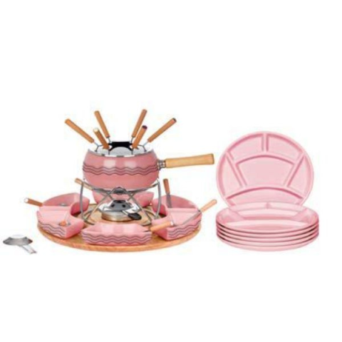 Kaufgut Fondue készlet 6 személyre EVA rózsaszín zománc színű 31 db edény termékleírás
