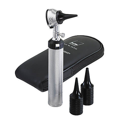 Kawe otoszkóp KaWe EUROLIGHT C10 Otoscop Kawe otoszkóp tulajdonságok: - Masszív fém ház - Vákuum izzó, állítható fényerő - Csavaros csatlakozás - 2,5 X-es, oldalra kihajtható nagyítóval - Tápellátás: 2 db Baby elem (nem tartozék) - Csatlakozó pneumati