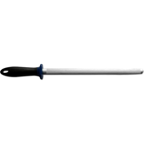 Élező - segítségével élezhető anyagok acél, ergonomikus fogantyú, élezőfelület hossza 30 cm, nyél anyaga műanyag, teljes méret 2,2 × 43,5 cm (Sz×H), tömege 350 g Sima professzionális fenőacél - lapos, sima, bordázat nélküli, finom élezéshez. A fenőacél felülete rozsdamentes galvanizált króm/gyémántpor réteggel van bevonva. A mag anyaga rozsdamentes e
