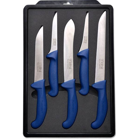 Késkészlet - henteskés és csontozókés, nyél anyaga műanyag, penge anyaga acél, 5 darab a készletben A készlet az 5 legnépszerűbb Profi Line kést tartalmazza.