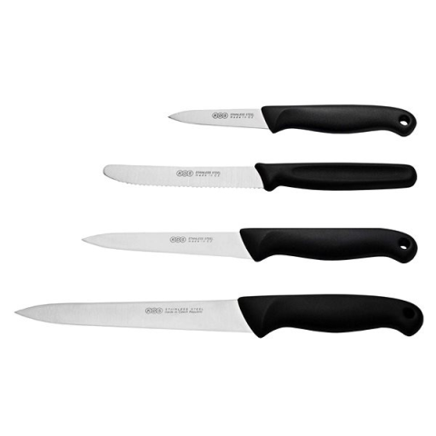 Késkészlet - szakácskés, nyél anyaga műanyag, penge anyaga acél, 4 darab a készletben A Quatro késkészlet a hagyományos cseh gyártótól, a KDS-től, minőségi, multifunkciós segítséget nyújt a konyhában.. A készlet négy praktikus kést tartalmaz, különböző hosszúságú és típusú pengékk