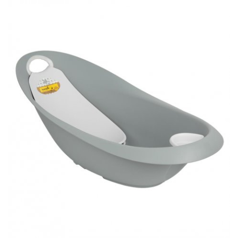 Különleges kialakítású anatómiai babakád a baba legkényelmesebb fürdetéséhez. Tartalmaz egy beépített fürdetőágyat, amely eltávolítható és ülőkének használható. A kád rendelkezik puha fogantyúval a kényelmes kezelhetőség érdekében, leeresztő dugóval és rekesszel a higiéniai segédeszközök tárolására.Újszülött kortól.Kád mérete 87 x 45.5 x 32.5 cmFürdetőágy mérete: 48 x 24 x 11 cm