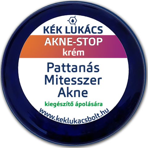 Kék Lukács Akne-Stop krém (pattanás, mitesszer) Dr. Lukács Károly fejlesztette ki a serdülőkori pattanások, mitesszerek és furunkulusok hatékony ápolására. A különleges készítményünk gyorsan és maradandó nyom nélkül tünteti el a pattanásokat, és alvás köz