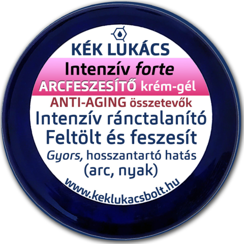 Kék Lukács Intenzív Forte Arcfeszesítő krém-gél (arc, nyak) 30ml Innovatív KÉK Lukács megoldást a gyors és látványos arcbőrfeszesítéshez az Intenzív Forte Arcfeszesítő krémünkkell! Kifejezetten az arc, a szájkörüli ráncok, a mimika ráncok és a nyak gyors