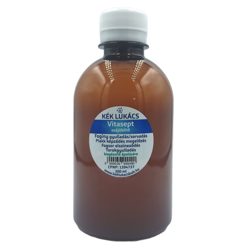 Kék Lukács Vita-sept szájöblítő (fogínygyulladás, fogsor elszíneződés) A szájöblítőnk kiválóan alkalmas a mindennapi szájhigiénia fenntartására: Segít megelőzni az ínygyulladást, a fogínysorvadást, valamint a plakk-képződést. Használata csökkenti a fogak