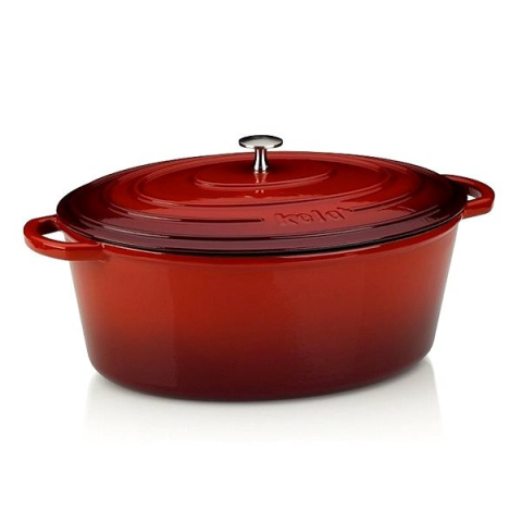 Sütőedény - 9 l-es űrtartalom, anyaga: öntöttvas, fedél és hordozó fogantyúk, indukciós, gáz, kerámia és elektromos tűzhelyhez, 285 mm széles, 350 mm hosszú, 145 mm magas, fekete színű Szeretsz sütögetni és kellene egy szuper sütőedény? A kiváló minőségű KELA Calido öntöttvas fedővel 35×28,5 cm max. űrtartalma 9 l, így megfelel minden elvárásodnak. Kiváló minőségű öntöttvasból gyárt