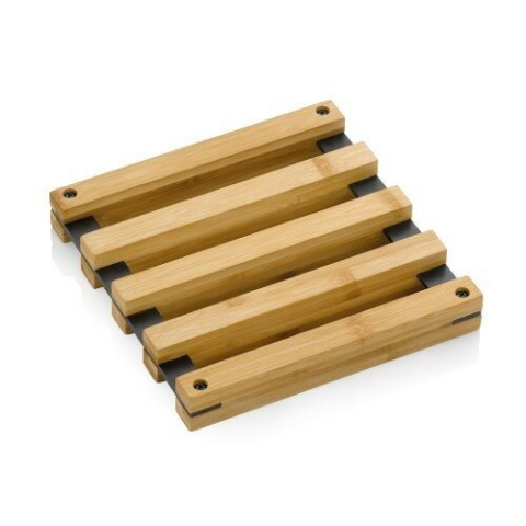 Ez a rendkívül stabil poháralátét két réteg bambusz lécből készült, amely nagy szigetelőképességgel rendelkezik. Ez lehetővé teszi, hogy akár nagyon forró edényeket is elhelyezzen az asztalra anélkül, hogy az asztal sérülne.