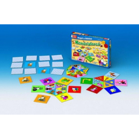 Bogyó és Babóca varázslatos mesevilága vidám memóriajátékra várja a gyerekeket! Keressük meg, hol bujkál Csiga Csaba! Vajon melyik kártyán lehet a Hangyakirálynő? A Bartos Erika csodálatos rajzaival díszített memóriajáték fejleszti a gyerekek emlékezőkép