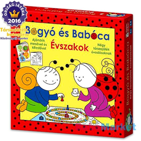 Bartos Erika most egy összetett társasjátékkal állt elő az óvodások nagy örömére! Az Évszakok társasjátékban 2 nagy méretű tábla található, amiken 4 különböző játékot találunk az egyszerűbb, lépegetős verziótól a fejlesztő jellegű társason keresztül a családi, beszélgető játékig. A Bogyó és Babóca rajongók így egy olyan csomagot kapnak, ami szinte mindent tartalmaz, ami a sorozathoz köthető. A dobozba bekerült egy könyvecske, amiben az összes sz