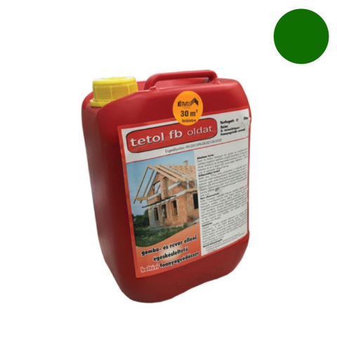 A Kemikál Tetol FB oldat zöld 10 L egy faanyagvédőszer, amelyet beltéri fafelületek gomba-, rovar-, és tűzkár elleni védelmére használnak. Alkalmazása ideális tetőszerkezetek, párnafák és más belső fa építési elemek kezelésére, védelmet nyújtva a károsító