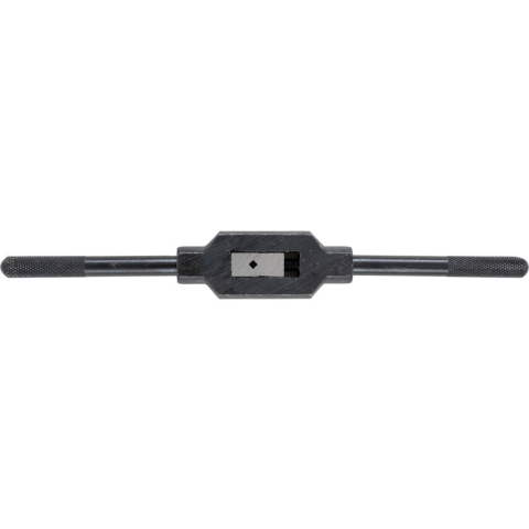 Edzett és megeresztett szerszámtest edzett és köszörült szorítópofák tömör konstrukció recézett állítható hajtókarok a jobb szorításhoz Az egyenes szárú kivitel nagyobb erőátvitelt tesz lehetővé mely különösen fontos nagyobb átmérőjű menetfúrók használata