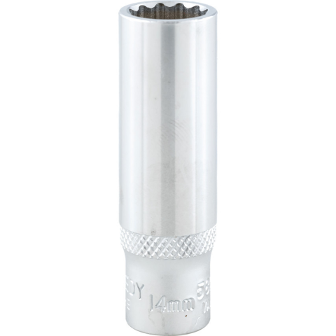 12 szögű kivitel amely nagyobb nyomatékot eredményez. Krómozott, polírozott, króm-vanádium acél. Belül letört élekkel a csavarfejekre való gyors ráfogás érdekében. Belső négyszög minden oldala horonnyal.