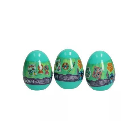 Stitch kicsi tojás apró meglepetés ajándékokkal! A tojás alakú tartóban matricákat, hegyezőt, radírt, filcet, nyomdát találhatsz, vegyes összeállításban. természetesen mind a Stitch karakterével díszítve. Hogy melyik készlet érkezik hozzád a kicsi tojásban, az persze meglepetés! A tojás mérete: 5 x 5 x 7 cm. Az ár 1 db tojásra vonatkozik.