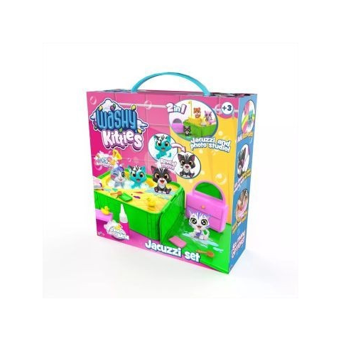 Ezek a Washy Friends Color Reveal Pancsoló cicusok imádnak játszani, és "sáros" bundával érkeznek hozzád. Légy jó gazdi, és fürdesd meg őket, hogy szép, szobatiszták legyenek. A csomag két különböző cica figurát, egy jacuzzit, és öt kiegészítőt tartalmat tartalmaz a pancsoláshoz, melyek között, kefét, törölközőt gumikacsát találhatsz, valamint egy extra adag trutyit, hogy másnap újra kezdődhessen a játék.