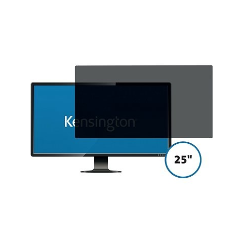 Monitorszűrő - 25"-es monitorhoz 16:9 képarányban, kétirányú, kétoldalas - matt és fényes oldal, beépítési lehetőség: állandó és eltávolítható, +/- 30°-ra csökkenti a látószöget, akár 42%-kal kevesebb kékfény, véd a kopástól és a kijelző sérülésétől, foltoktól és ujjlenyomatoktól, méretek: 554 × 312 × 0,39 mm (Szé × Ma × Mé) Bízz a Kensingtonban, amely adatvédelmi szűrővel védi a monitor képernyőjén megjelenő érzékeny adatokat! Az adatv