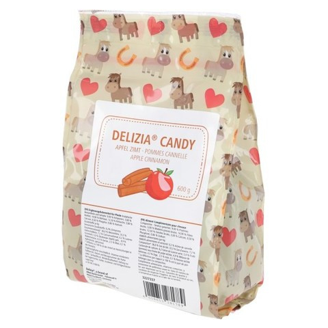 Delizia Candy speciális jutalomfalat lovak számára. Igazi ízorgia, gyümölcsökkel és gyógynövényekkel. Kiváló minőség, természetes összetevők - mind a lova kényeztetése érdekében. Alapvető vitaminokkal és ásványi anyagokkal dúsítva. Több ízben is kapható.