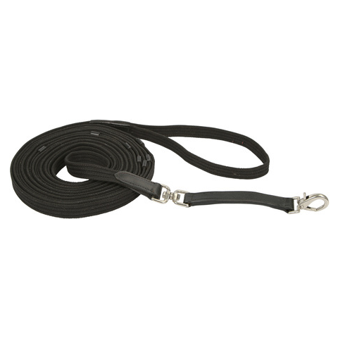 Kerbl futószár bőr stopokkal. A bőrborda biztosan, stabilan tartja a lonzsot. Nagy csuklópánttal és forgó karabinerrel. Kb. 8 m hosszú.
