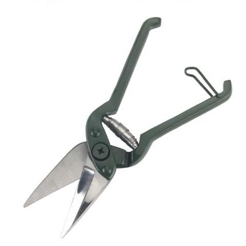 Professzionális körmölő olló birkákhoz, fogazott éllel. A 26 cm hosszú, erős fém konstrukciójú olló nagy értékű nyíróélekkel rendelkezik, precíz és hatékony körömvágást biztosítva. A zöldre lakkozott felület esztétikus megjelenést kölcsönöz az ollónak.