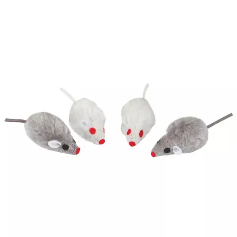 Találja meg macskája új játékát! A 5 cm-es játék egerek ideális választás minden játékos kedvű cicának. Ezek a szürke és fehér színű, szőrös játékegerek tökéletesen megfelelnek macskája vadászösztöneinek kielégítésére.A játékegerek csörgő hangja extra szórakozást nyújt, serkentve macskáját az aktív játékra. Egy csomagban négy darab ilyen játék található, így kedvence válogathat közöttük vagy megoszthatja azokat társaival. Az erős anyagok