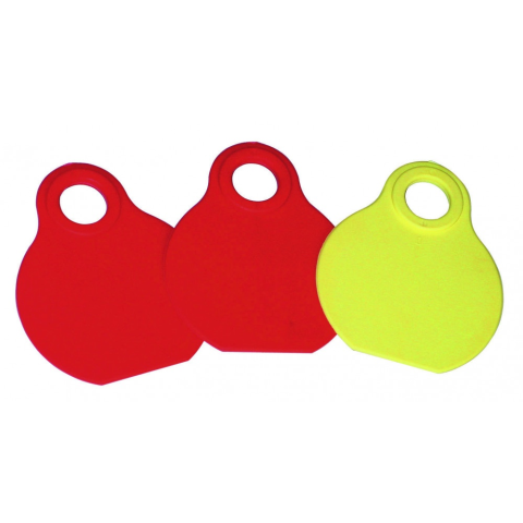 Mediplus krotália nyakpántra: 65x80 mm-es ovális nyaktábla juhoknak. 25 db/csomag, piros vagy sárga színben. Tartós és jól látható azonosítás. Mediplus krotália nyakpántra - Hatékony és tartós azonosítási megoldás juhállományok számára A Mediplus krotá
