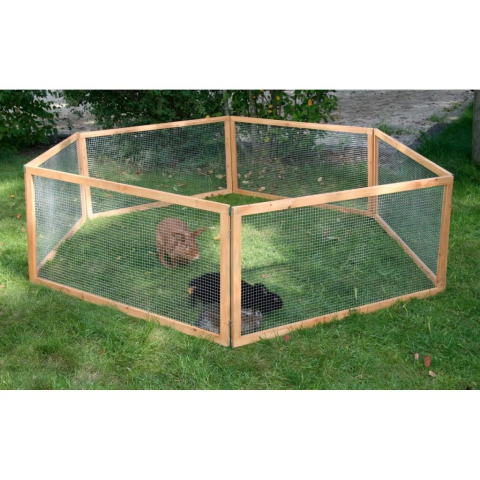 A Kerbl Vario kültéri állatketrec nagyszerű megoldást kínál állatai számára a kertben való játszáshoz. Az állatketrec 6 darab 120 x 60 cm-es (Ho x Szé) panelből és 6 oszlopból áll, melyek többféleképp elrendezhetők. A háziállat-játszóház a tető lezárásával 1,44 m² területet fed le, azonban ha nyitva hagyja a tetőt, seperc alatt megduplázhatja ezt: így 2,88 m² a ketrec területe. A ketrecben kisállatai rágcsálhatják a füvet és futkorászhatnak. A ketrec