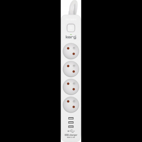 1 kép KERG M02413 Túlfeszültségvédő Elosztó 4 aljzatos 3xUSB-A 16A 1,5m - Fehér ( )