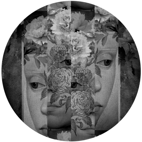 1 kép Kerma Design Öntapadós kör alakú poszter tapéta, reneszánsz arc, virágok 120x120 cm