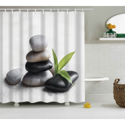 Kermix Textil zuhanyfüggöny 180x200 cm, feng-shui levéllel mintázattal, mosható és vasalható lakástextília termékleírás