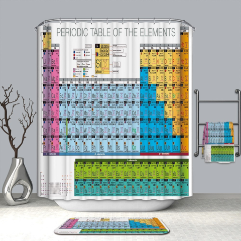 1 kép Kermix Textil zuhanyfüggöny 180x200 cm, periódusos rendszer mintázattal, mosható és vasalható