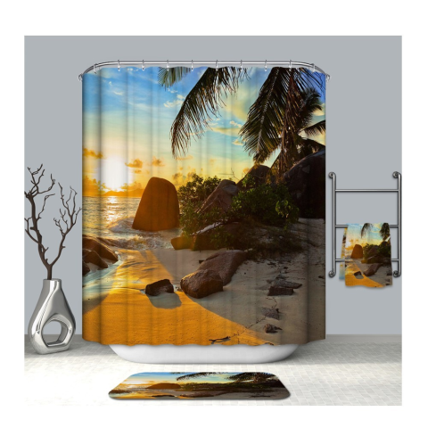 1 kép Kermix Textil zuhanyfüggöny 180x200 cm, sziklás part mintázattal, mosható és vasalható