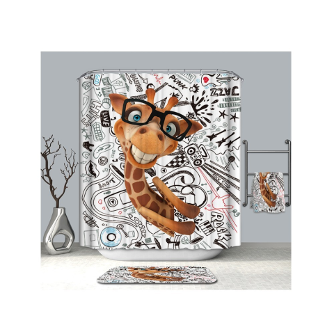 1 kép Kermix Textil zuhanyfüggöny 180x200 cm, zsiráf mintázattal, mosható és vasalható