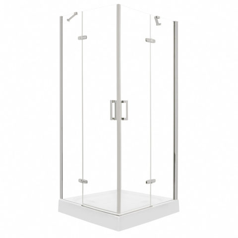Flow zuhanykabin króm kivitelben, 80 × 80 cm-es zuhanytálcával. Adat: Méretek – 80 × 80 × 210 cm Profilok – alumínium, króm Ajtók – kétszárnyú, csuklós Üveg – 6 mm, edzett, átlátszó; KERRA PROTECT védőbevonattal Telepítés – sarok