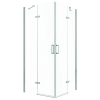 Flow Chrome szögletes nyílóajtós zuhanykabin 80x80 cm Tulajdonságok: Mérete: 78,5 x 78,5 x 195 cm Profil: alumínium, króm Dupla nyílóajtók Üveg: 6 mm víztiszta biztonsági üveg vízlepergető bevonattal Sarokba szerelhető