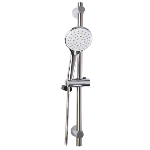 GRETA zuhanyszett GRETA zuhanyszett rúddal – 3-funkciós kézi zuhany, 70 cm rúd, krómTermék jellemzőkRúd: 70 cm • rozsdamentes acél • állítható tartókocsivalZuhanyfej: 3 vízsugár-mód (zuhany, masszázs, mix) • Ø 11,5 cm • AntiCalc rendszerTömlő: 150 cm,