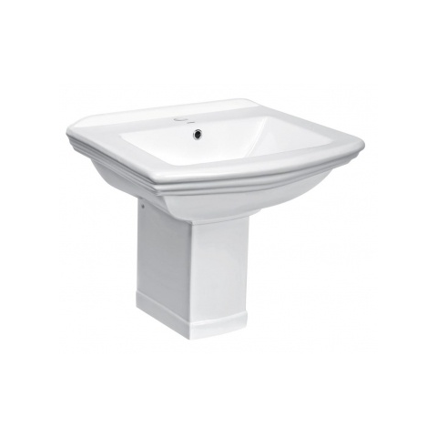 Kleopatra 14 kerámia mosdó féltalapzattal Műszaki adatok: Méretek: magassága 57 cm szélessége 60 cm mélysége 47 cm a készlet túlfolyó sapkát tartalmaz fehér szín forma: téglalap alakú összeszerelő készlet