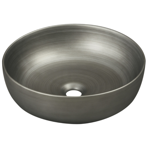 Kerra KR-98 SILVER kerámia design mosdóFőbb adatok • 41,5 × 41,5 × 13 cm • szaniter kerámia • ezüst-fémes máz • kerek forma • csapfurat nélkül • túlfolyó nélkül • pultra szerelhetőAz ezüstös, fémesen csillogó máz különleges vákuum-porlasztásos technol