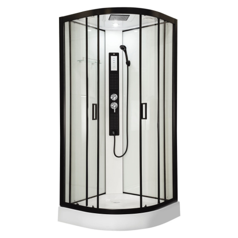 Petrus 90x90 cm íves hidromasszázs zuhanykabin Petrus 90x90 cm íves hidromasszázs zuhanykabinKabin méretek: 90 x 90 x 215 cmZuhanytálca méretei: 90 x 90 x 15 cmProfilok: alumínium, feketeAjtók: kétszárnyú, tolóÜveg: 4 mm, edzettZuhanytálca: akril, fehé