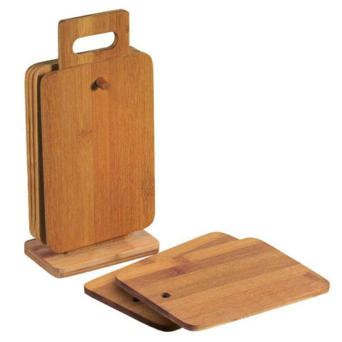 Tedd fel kérdésed a(z) Kesper 6db vágódeszka készlet Kesper 58375, Állvánnyal, 22x14x0,8cm, Bambusz, Akasztó lyukak, Barna termékről!