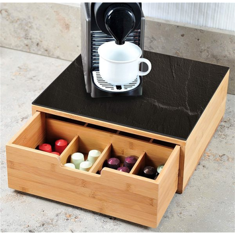 Rendszerező - méretei: 30 x 31 x 10 cm, anyag: bambusz/edzett üveg Kdo by si nepřál efektivně využívat prostor v kuchyni? Organizér Kesper Box na kávové kapsle/čajové sáčky vám k tomu dopomůže a díky přírodnímu vzhledu a dekoru břidlice se navíc stane hezkou dekorací