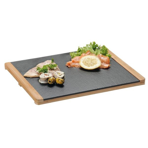 A Kesper büfé tálca a természetes pala lapot és a bambuszfát ötvözi. Ideális sajtok, felvágottak, tapasok vagy desszertek tálalására. Méretek: 34 x 26 cm. Remek kiegészítő minden ünnepségre vagy bulira.