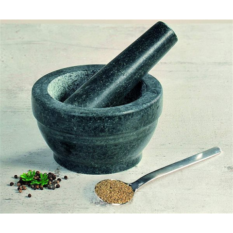 Mozsár - átmérője 16 cm, anyaga gránit, szürke kivitel A sötét, polírozott gránitból készült Kesper mozsár minden háziasszony tökéletes segítőtársa lesz gyógynövények és fűszerek aprításánál vagy pesto készítésénél. A hatalmas belső rész nagy darabok