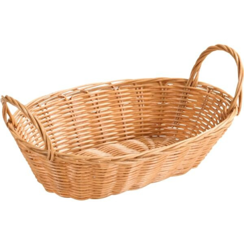 Fonott ovális kenyérkosár Kesper fogantyúval a könnyű kezelhetőség és az elegáns megjelenés érdekében. Méretei: 29 x 18 cm. Műanyagból készült, ideális péksütemények és egyéb falatkák tálalásához.