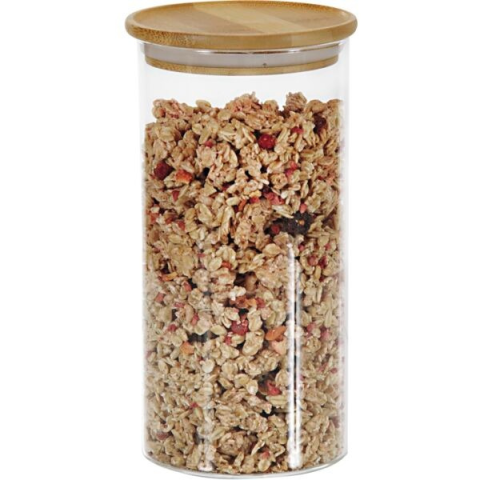 Légmentesen záródó üvegtároló, amely a modern kivitelezésének köszönhetően feldobja a konyháját. Tökéletes cukor, fűszerek, kávé vagy bármi más élelmiszer tárolására. Az edény teteje bambuszból készült. Tiszta, elegáns megjelenés. Nem tartalmaz BPA-t, biztonságos az élelmiszerek tárolására. Több méretben kapható.