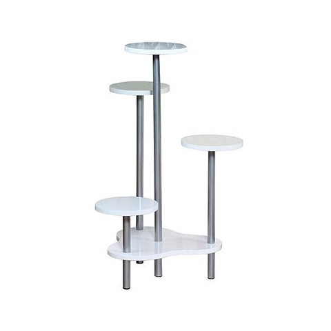 Virágtartó - legfeljebb 4 virághoz, legfeljebb 20 cm átmérőjű virágcserepekhez, a kerek polcok FSC tanúsítvánnyal rendelkező fehérre lakozott MDF lemezből készültek, a fém szerkezet (alumínium színű) biztosítja az állvány stabilitását, méret: 64,5 (szélesség) x 46 (mélység) x 72,5 (magasság) cm A növények igazán otthonos hangulatot teremtenek, a Kesper virágállványon pedig szenzációs módon helyezheted el őket. Az állvány tölgyfából készült. Az FSC-