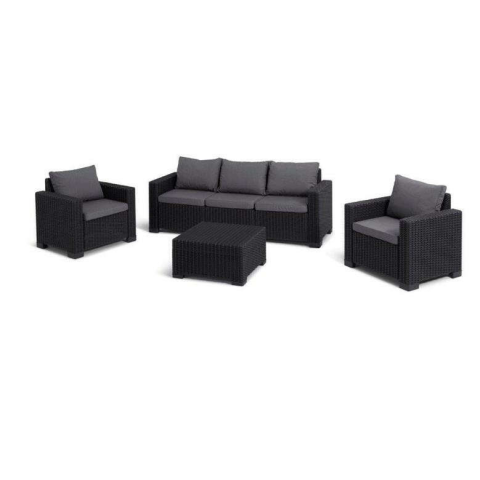 Keter California Kerti Garnitúra: Pihenés a szabadban ☀️ Élvezze a nyári napokat a Keter California kerti garnitúrával! Ez a stílusos és kényelmes szett tökéletes választás a teraszra, kertbe vagy erkélyre.  A 3 személyes kanapé, két fotel és az aszta...