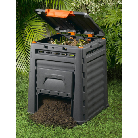 Az Eco Composter 320 L komposztáló alkalmazása kiváló megoldást jelent a háztartási és kerti hulladékok trágyává alakításához. A falcsatlakozások speciális rendszere és a stabil szerkezet a komposztáló megkérdőjelezhetetlen előnyeivé tartoznak. A termék újrafeldolgozásból származó, újrahasznosítható műanyagokból készült. Termék mérete: 65 x 65 x 75 cm