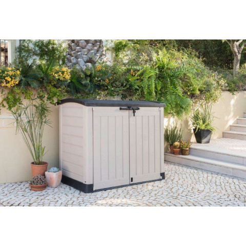 1 kép    KETER Store it out arc kerti tároló szekrény, műanyag, 1200L, bézs-barna