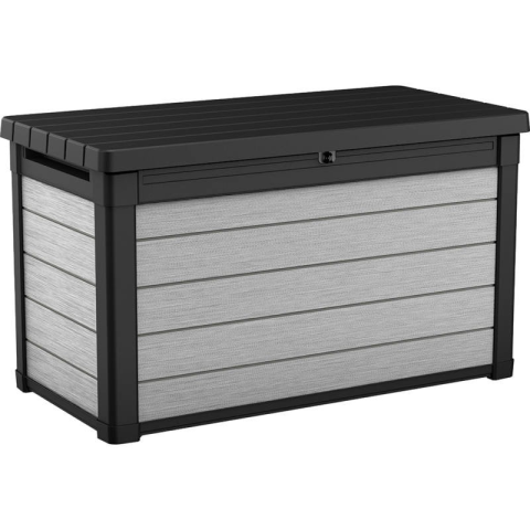 380 literes, kevés karbantartást igénylő tároló doboz szüre fa kivitelben, innovatív, nagyon robosztus DUOTECH™ anyagból, szintetikus gyantából. Száraz, szellős környezetet biztosít a benne tárolt tárgyaknak. Kifinomult nyitó mechanizmus technológia. A