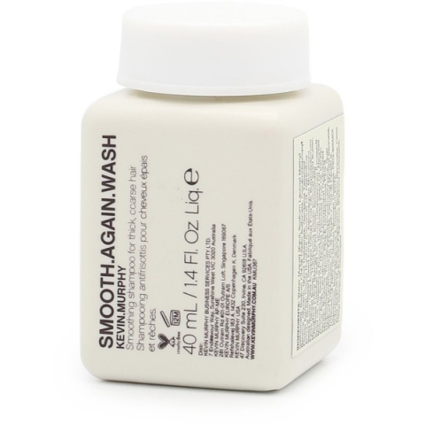 Sampon nők számára - hagyományos sampon, hullámos, göndör, nehezen kezelhető és töredezett hajra ajánlott, hidratáló, hajsimító, fejbőr viszketés elleni, ekcémás bőr kímélő, hajvédő és erősítő hatás, természetes olaj tartalmú és vitaminos, 40 ml-es kiszerelésben, professzionális kozmetikum A KEVIN MURPHY Smooth.Again.Wash sampon a sűrű, göndör és rakoncátlan hajra lett kifejlesztve. Hatékonyságát a természetes olajok és vitaminok együttes ereje bizt