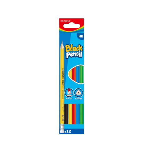 1 kép KeyRoad Grafitceruza, HB, radíros, háromszögletű, 12 db/bliszter, Keyroad, vegyes színek